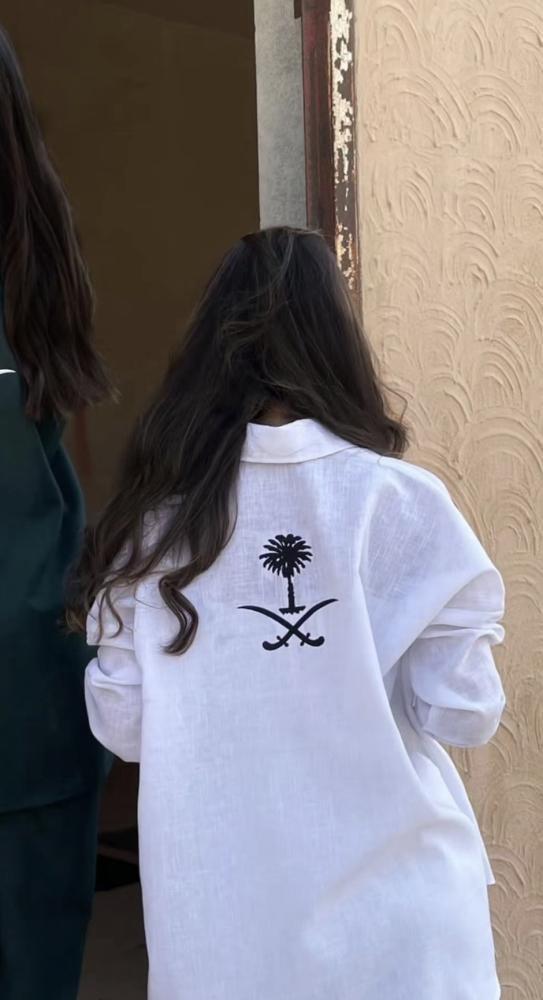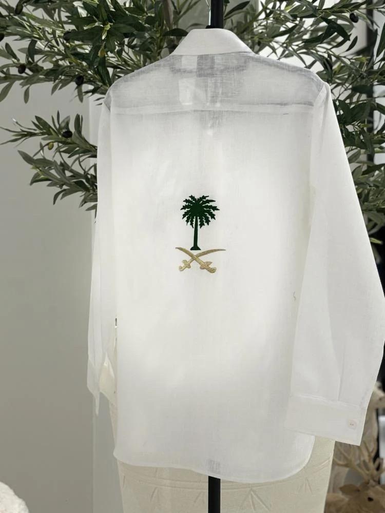 مع تطريز سيفين ونخلة كبير بالخلف حدود ٢٠ سم + صغير من الأمام حدود ٧ سم